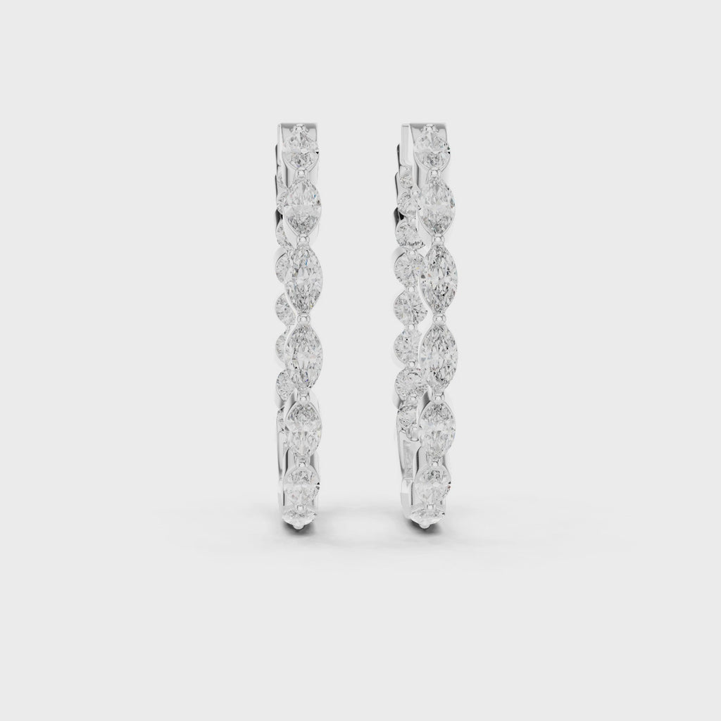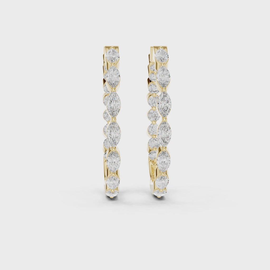 Elevate your style with the Marquise Cascade Lab-Grown Diamond Hoop Earrings, designed for those who appreciate refined elegance and modern craftsmanship. These hoops feature a graceful sequence of marquise-cut and round brilliant lab-grown diamonds, arranged to create a flowing, elongated silhouette that flatters effortlessly.