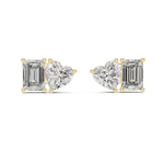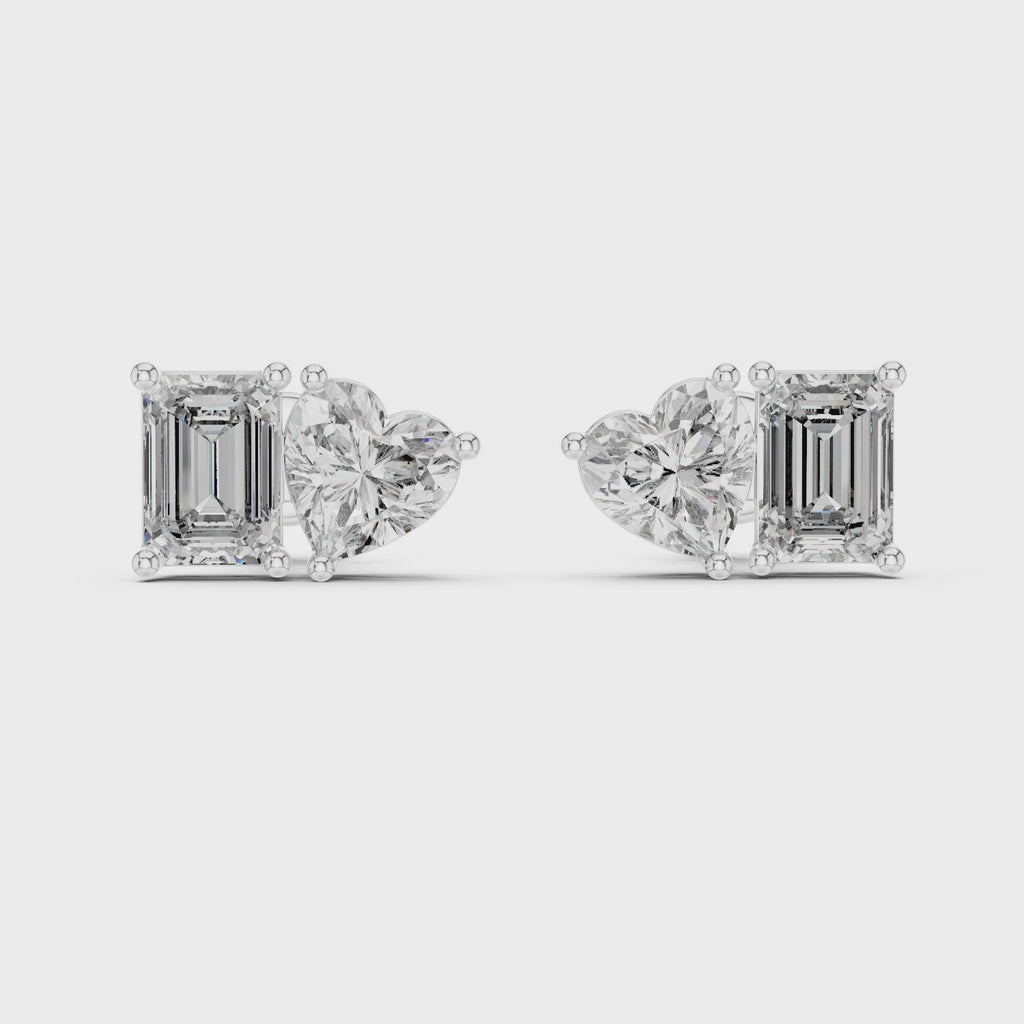 Each stud features a stunning heart-shaped lab-grown diamond beautifully paired with an elegant emerald-cut diamond, creating a unique two-stone silhouette that sparkles from every angle. The thoughtful dual-stone layout makes these earrings stand out instantly while remaining versatile enough for everyday wear.