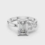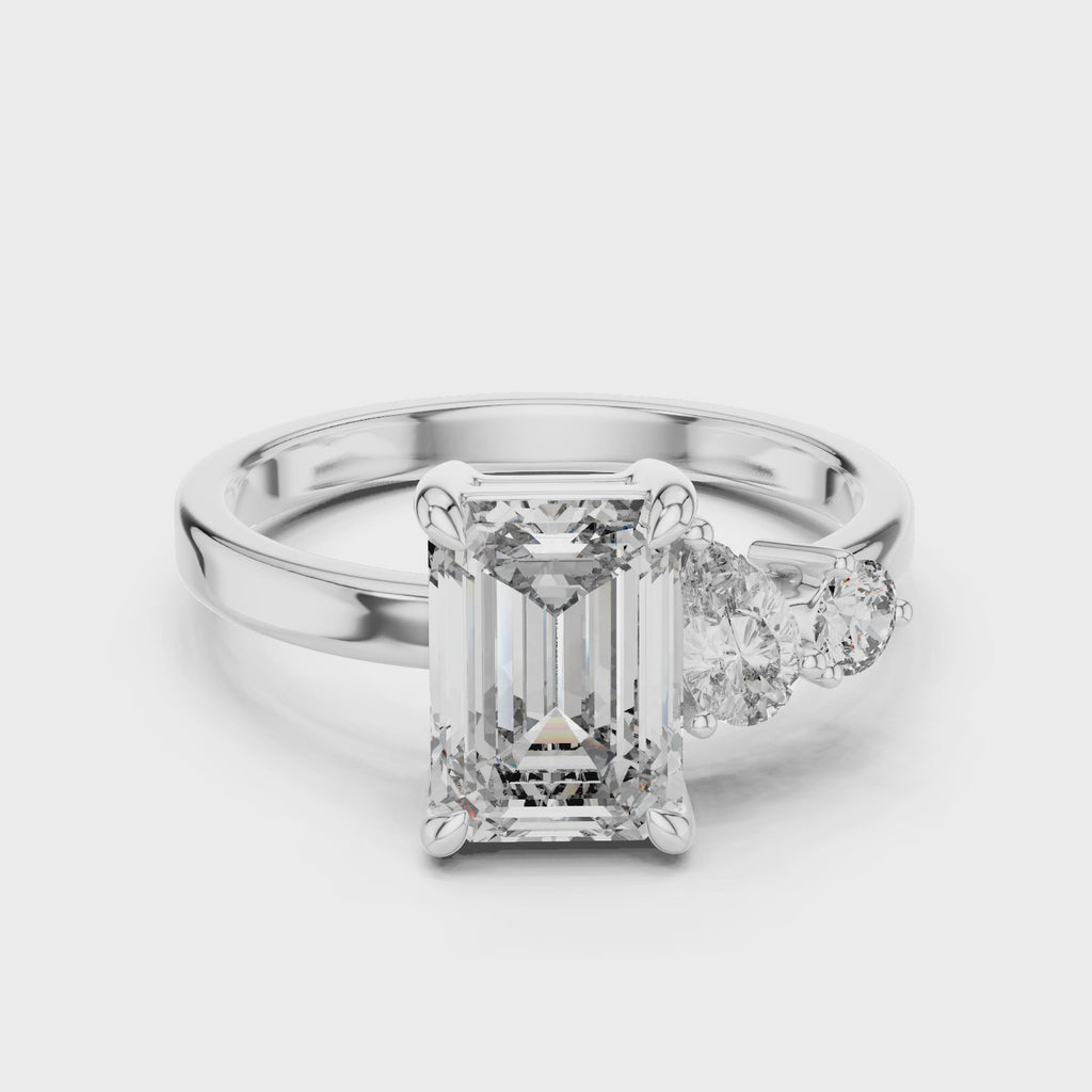 This Classic Three-Stone Princess & Round Diamond Ring is a timeless and elegant design crafted with refined detailing. Featuring a bold princess-cut center stone elevated on a secure prong setting, the ring adds a modern architectural charm to a traditional silhouette.