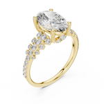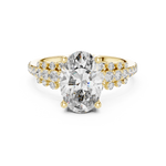 • Striking oval-cut center stone measuring 10.50 × 7.00 mm
