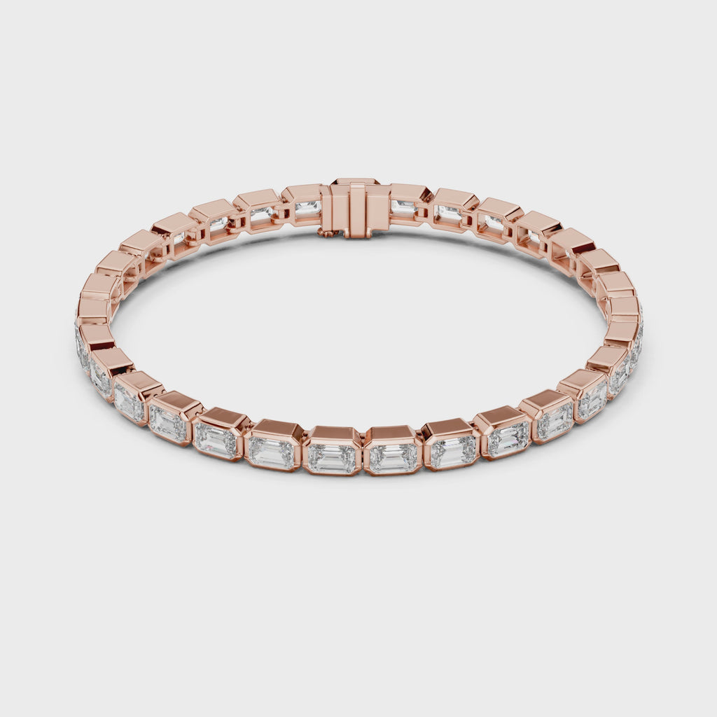 This Elegant Emerald-Cut Lab-Grown Diamond Line Bracelet is a refined classic crafted for everyday luxury and timeless sophistication. Featuring a full row of meticulously aligned emerald-cut lab-grown diamonds, each stone is securely framed in a sleek bezel setting that enhances brilliance while maintaining a smooth, modern profile.
