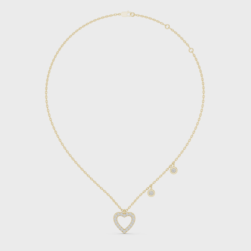 This Elegant Heart Pendant Necklace showcases a beautifully crafted open-heart design adorned with shimmering round lab-grown diamonds. Suspended from a delicate chain, the pendant radiates timeless charm and sophistication, making it ideal for gifting or everyday elegance.