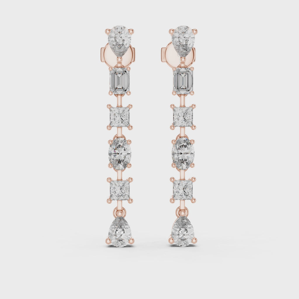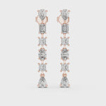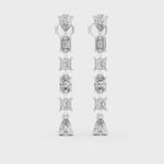 These Elegant Multi-Shape Lab-Grown Diamond Linear Drop Earrings are crafted to highlight a refined blend of graceful silhouettes and modern sophistication. Featuring a vertical arrangement of princess, pear, oval, and emerald-cut diamonds, each stone transitions smoothly into the next, creating a harmonious flow of shapes and brilliance. The thoughtful progression of diamond cuts adds depth and visual interest, making these earrings an elevated choice for both formal occasions and refined daily wear.