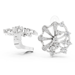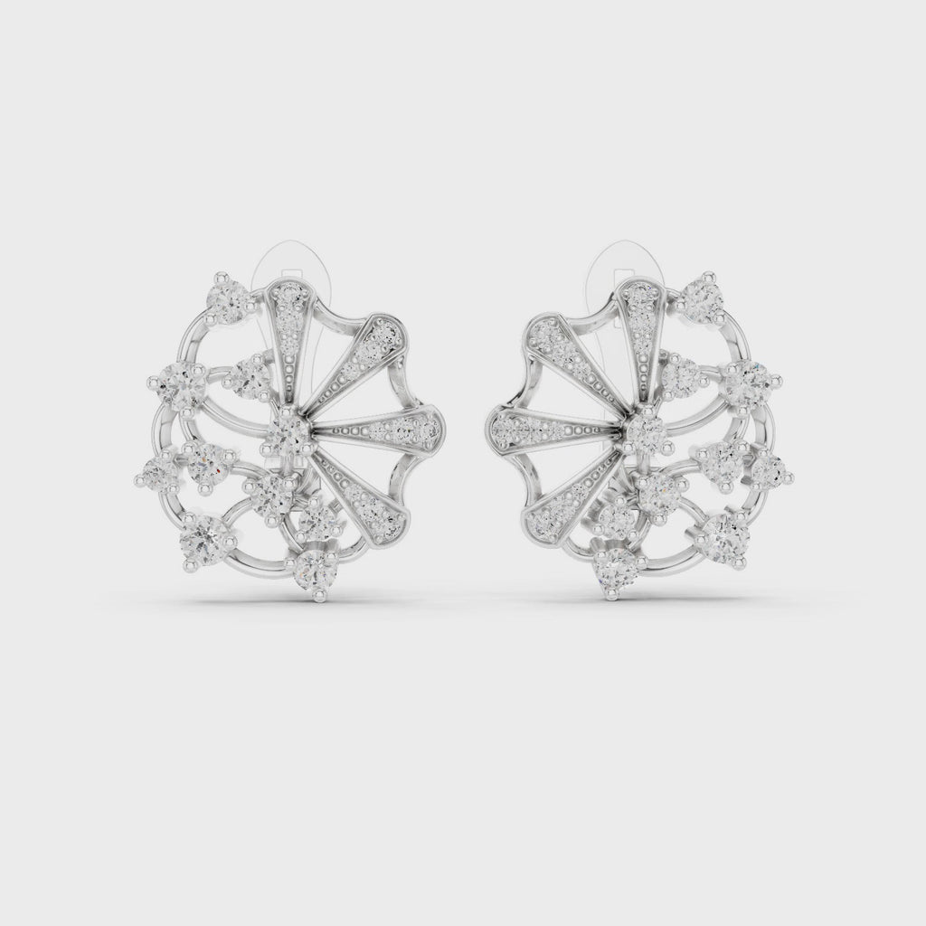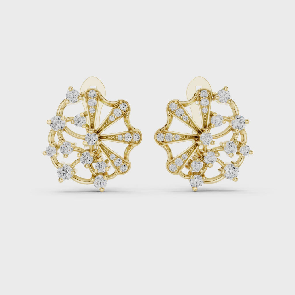 These Intricate Floral Burst Diamond Cluster Earrings showcase an artistic fusion of floral geometry and shimmering brilliance. Designed with a radiating fan-petal motif surrounded by delicate diamond clusters, the earrings create a visually captivating arrangement that highlights symmetry, depth, and movement.