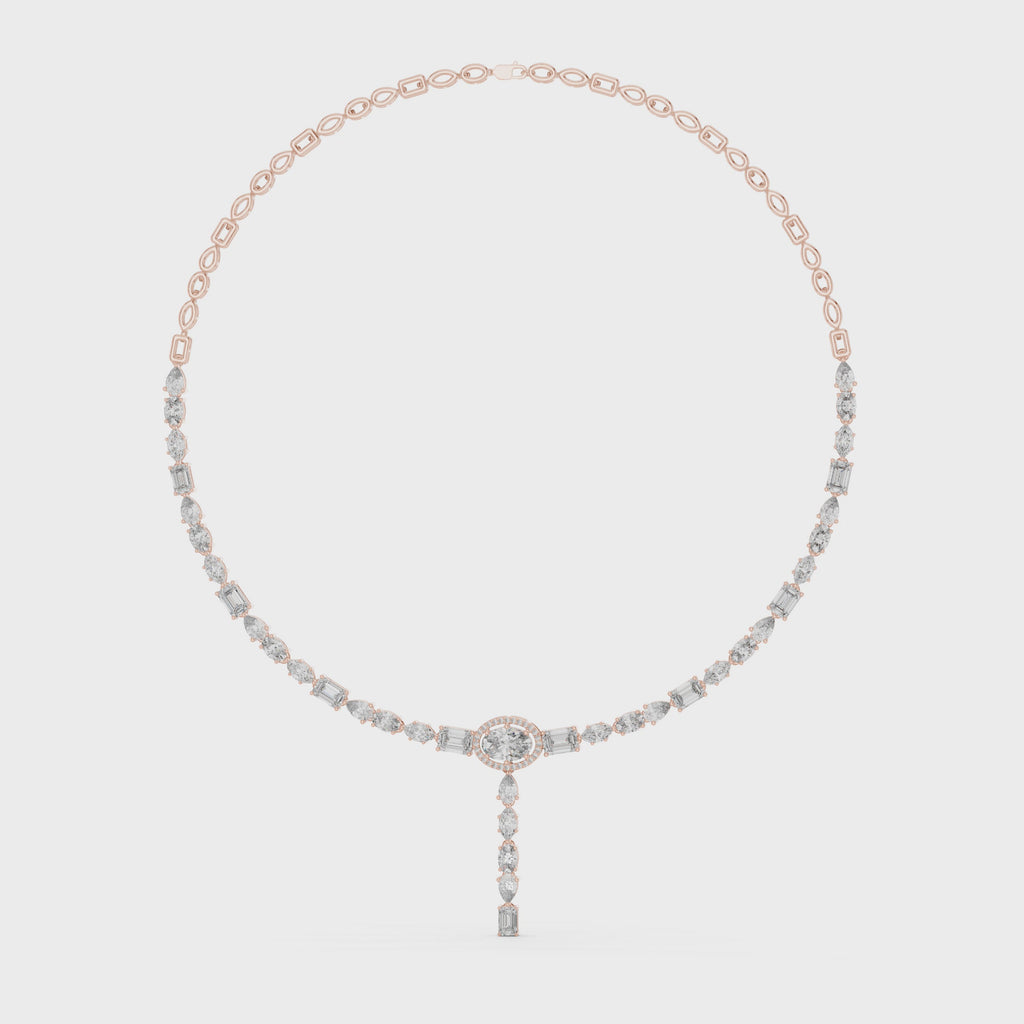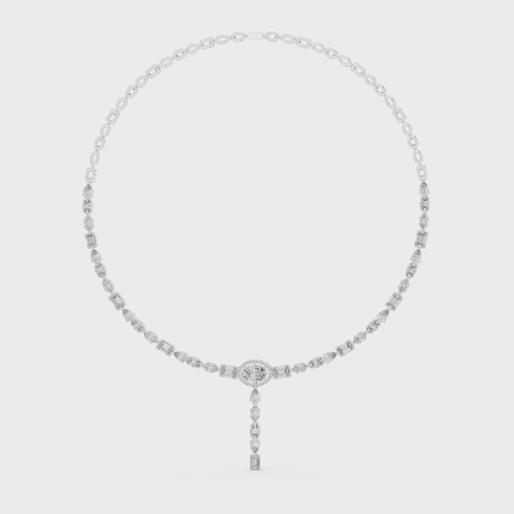 This Luxury Lab-Grown Diamond Drop Necklace is an exquisite blend of elegance, symmetry, and high-end craftsmanship. Featuring a sophisticated arrangement of oval, emerald, pear, and marquise-cut lab-grown diamonds, the necklace showcases a stunning central drop element measuring 42.15 mm in height.