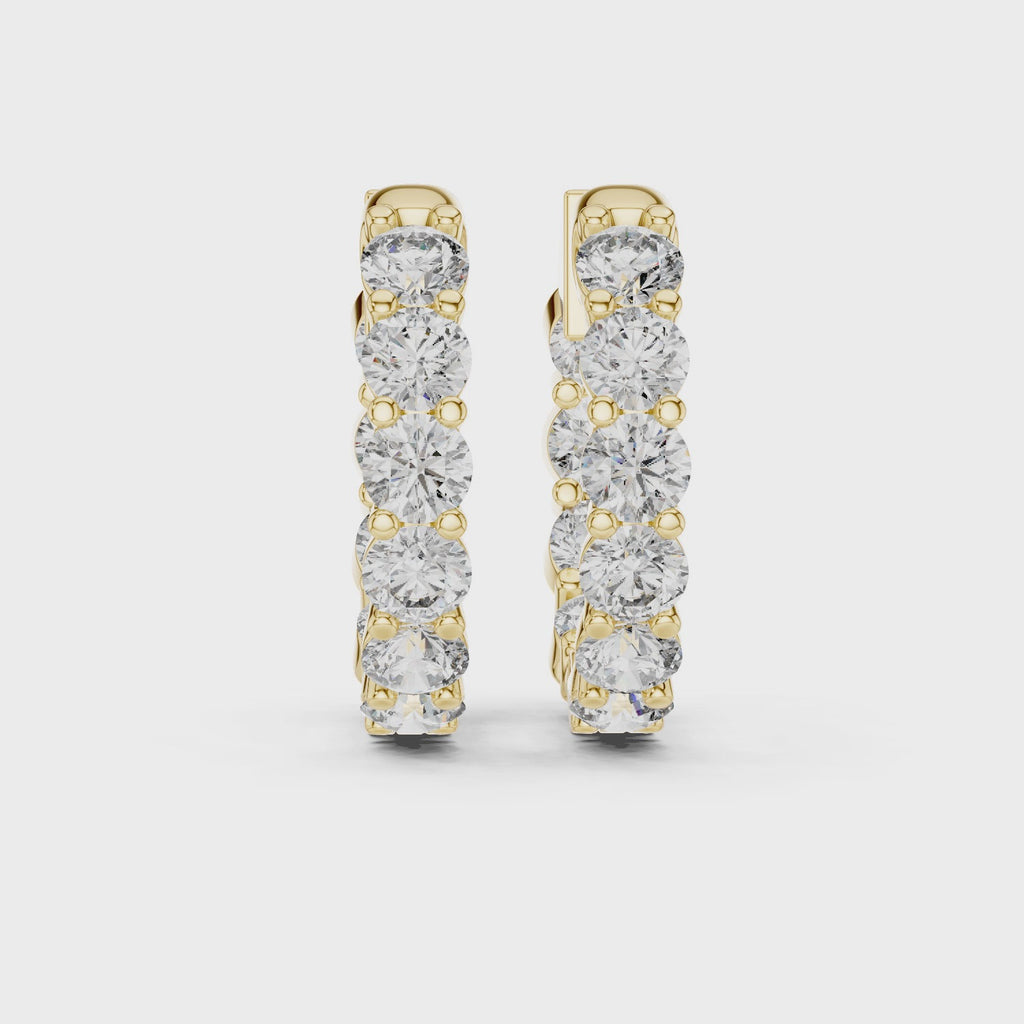 Each hoop features a continuous row of handset round CVD diamonds, showcasing exceptional fire and radiance from every angle.