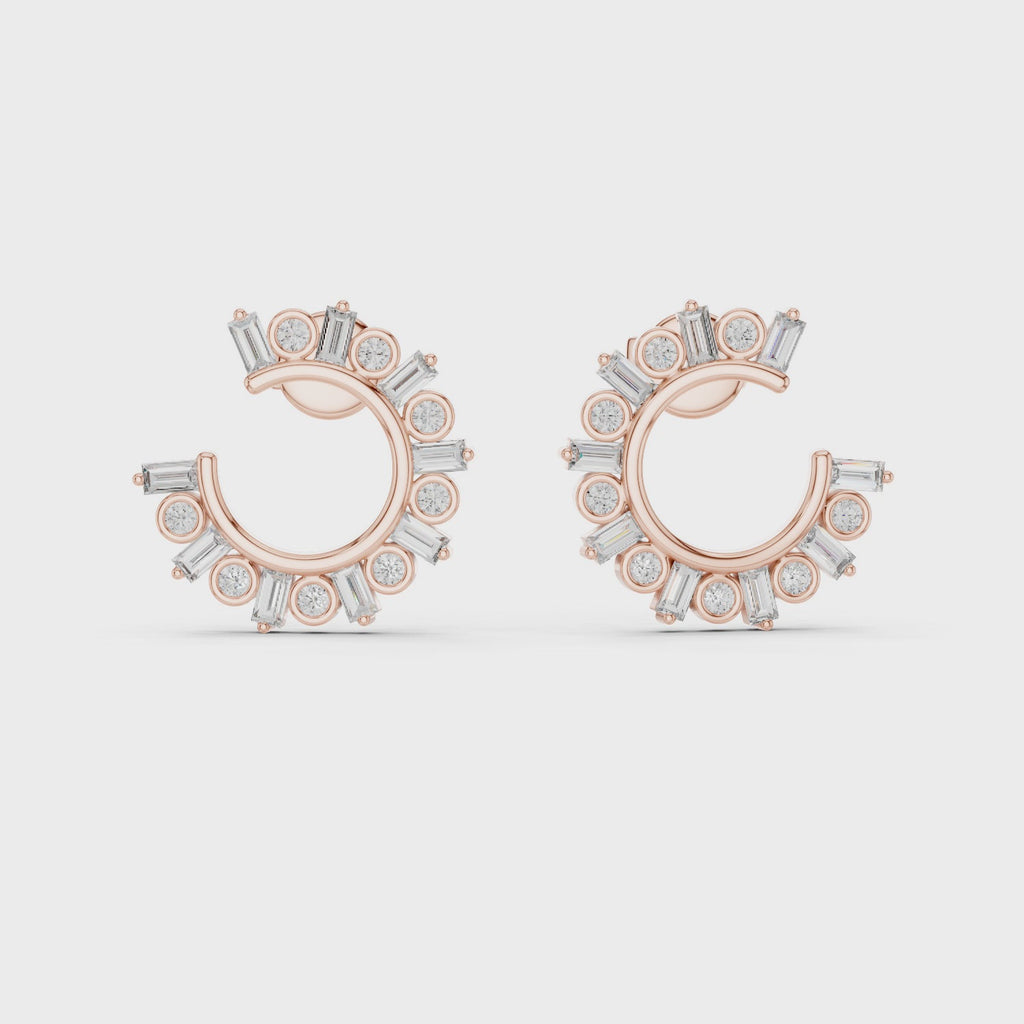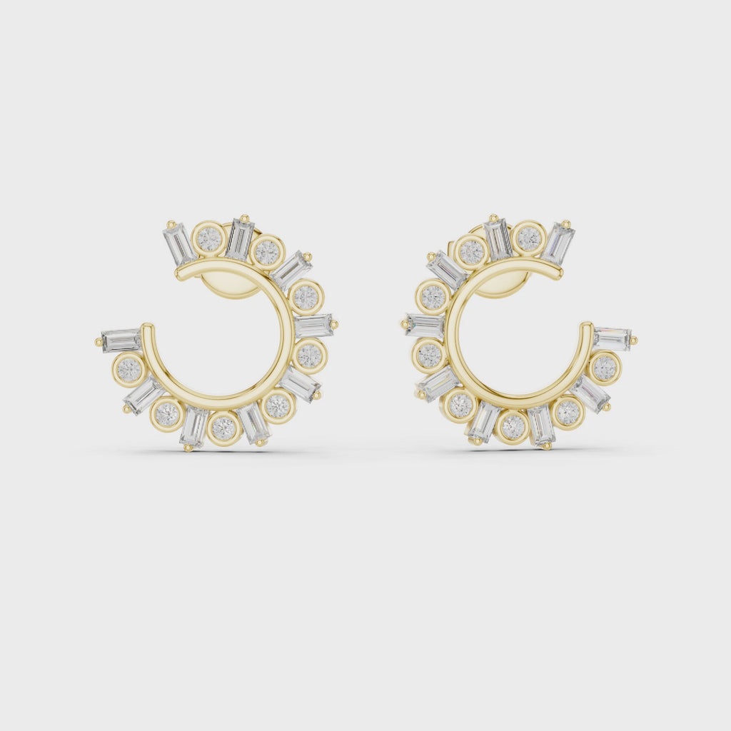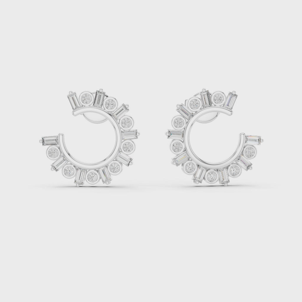 Elevate your everyday elegance with the Radiant Cluster Lab-Grown Diamond Half-Hoop Earrings, thoughtfully crafted to showcase a harmonious blend of brilliance and refined design. These earrings feature a circular half-hoop silhouette adorned with alternating sizes of round-cut CVD diamonds, creating a captivating cluster pattern that offers dimensional sparkle from every angle.
