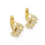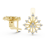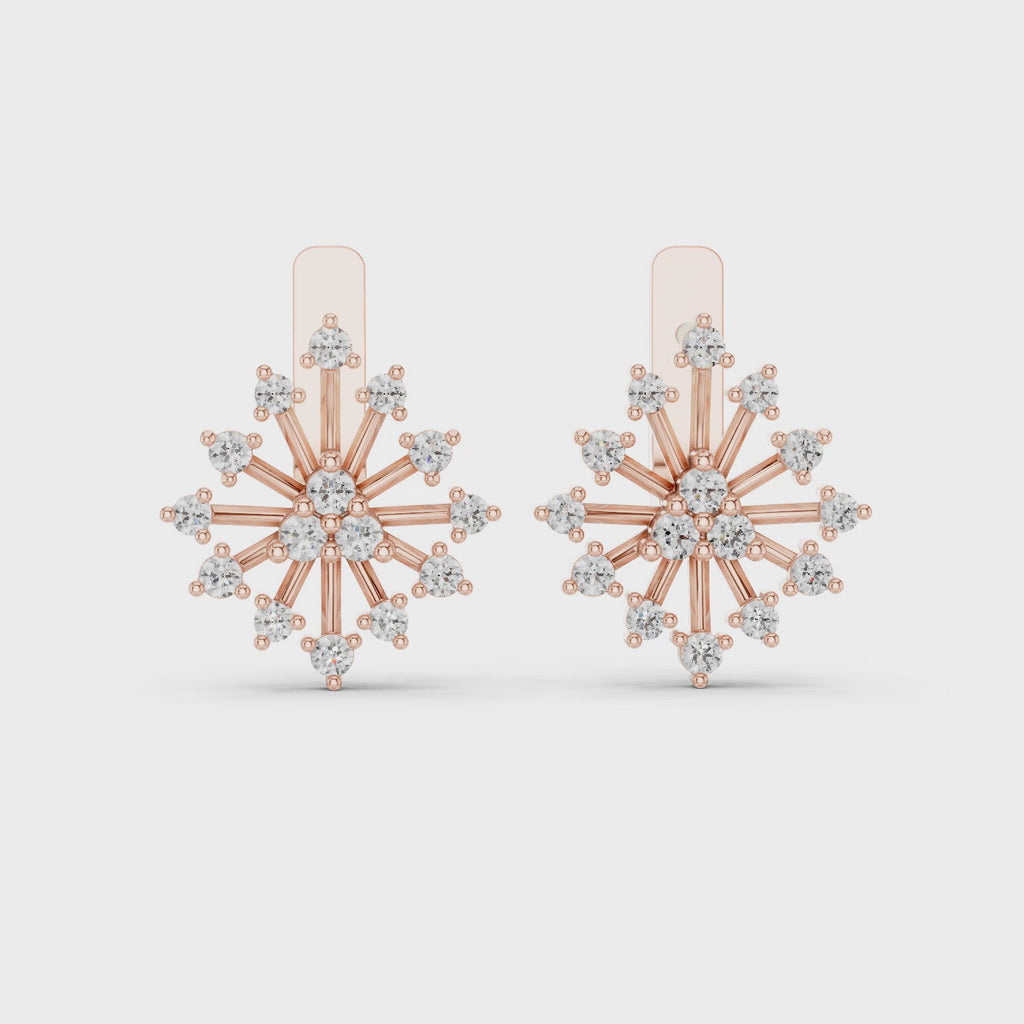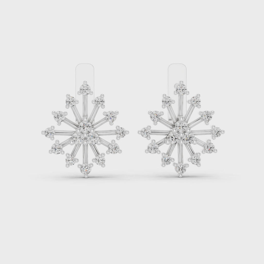 These Radiant Snowflake-Style Multi-Round Diamond Earrings are crafted to deliver a brilliant burst of sparkle inspired by the symmetry and elegance of a snowflake. Designed with meticulously arranged round diamonds in three calibrated sizes, the earrings create a radiant starburst effect that enhances light reflection from every angle.